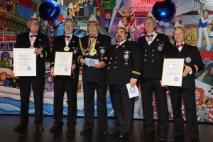 Ehrung zum Ehrenmitglied und Kapitänleutant vum Müllemer Böötche : v.l.n.r. Norbert Beenen, Kapitänleutant vum Müllemer Böötche Torsten Anders, Präsident Sieggried Schaarschmidt, Geschäftsführer Nikolay Gassner, Mitgliederbetreuer Jens Wegner, Schatzmeister und Kapitänleutnant vum Müllemer Böötche Dirk Schmittseifer