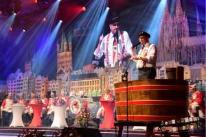 Bis zur Pause folgte ein abwechslungsreiches Programm mit „Der Rednerschule“ mit Martin Schopps, den rhythmischen Liedern von „Band Kempes“ Finest, dem Witzen und Anspielungen des „Blötschkopp“ Marc Metzger sowie der StattGarde Colonia Ahoj, die mit komplettem Stammboot, Bordkapelle, Shanty-Chor und ihrem über Köln und das Rheinland bekannten Tanzcorps – den „jeilsten Schenkeln der Domstadt“ – für maritime Karnevalsstimmung sorgte. Ergänzt wurde das Programm durch Dr. Jens Singer in seiner Type als der „Der Schofför des Kanzlers“, „Bläck Fööss“ und die „Fauth Dance Company“, die die „Äujelchen“ der Männer strahlen ließen. „Et Klimpermännche“ Thomas Cüpper oblag es wie in jedem Jahr den offiziellen Teil des Künstlerparts stimmungsvoll beschließen.