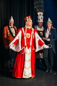Besonders freuten sich die Greesberger über den Besuch ihres Mitgliedes und ehemaligen Tänzers Julian Hennecke, der in diesem Jahr als „Jungfrau Tinni“ Mitglied des Niehler Dreigestirnes ist und seine Kollegen sowie seinen gesamten Hofstaat mit auf die Bühne brachte.