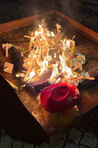 Im Beichtstuhl nahm dieses Jahr die 2. Vorsitzende Birgit Rode Platz und hörte sich geduldig die Sünden der beichtenden Jecken an. Jede Verfehlung wurde akribisch auf einem Ablassbrief notiert, der anschließend feierlich versiegelt wurde. So erhielt jede Sünderin und jeder Sünder die Möglichkeit, den persönlichen Ablaßbrief später ins Feuer der „Nubbeline“ zu werfen – und damit symbolisch sündenfrei aus dem Karneval zu gehen.