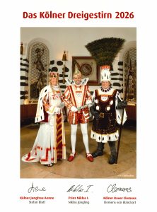 P: Prinzen-Garde Köln 1906 e.V. B: Kölsche Funke rut-wieß vun 1823 e.V. J: Kölner Funken Artillerie blau weiß von 1870 e.V. – Blaue Funken |